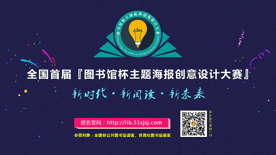 为积极响应国家大力支持和发展文化创意与设计服务的政策,全力推动书香中国的建设,进一步加强图书馆与读者的互动,鼓励优秀设计人才参与图书馆阅读推广宣传工作,让更多读者参与全民阅读推广,营造浓厚的阅读氛围,中国图书馆学会阅读推广委员会决定在全国开展首届『图书馆杯主题海报创意设计大赛』,具体事宜通知如下: