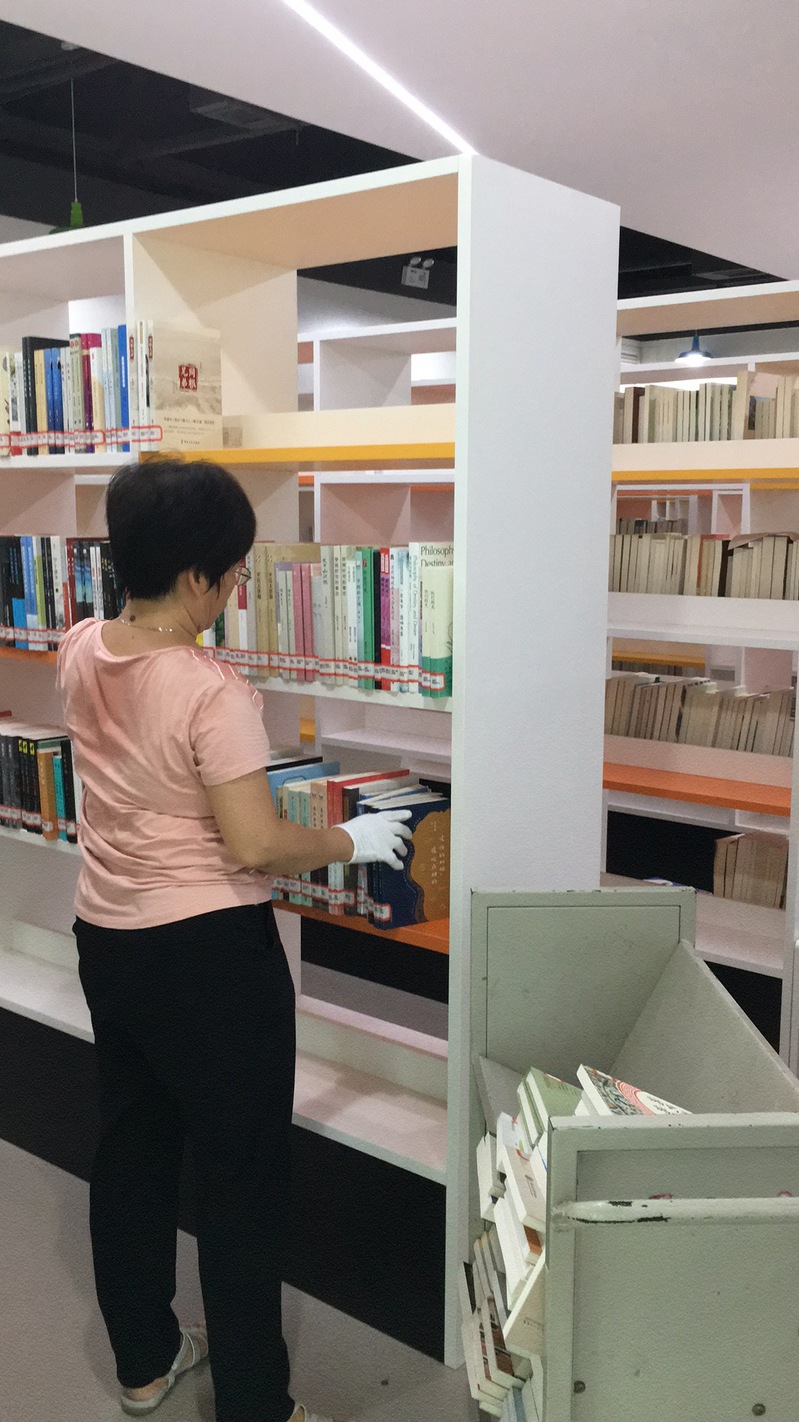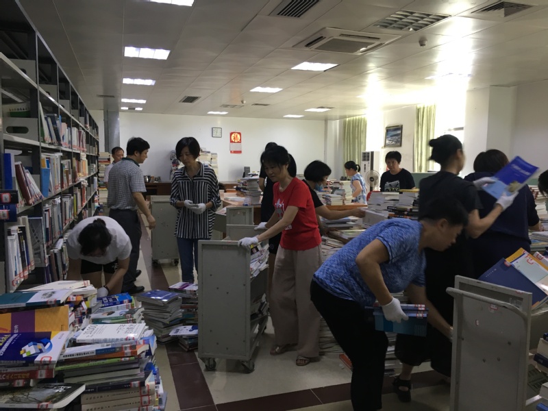 四是开展了24H智慧图书馆开放的前期准备工作。为保证24H智慧图书馆在新学期早日顺利开馆,暑假期间,图书馆对24H智慧图书馆进行了项目的验收以及各种设施设备的安装调试。8月29--30日,全体工作人员全力以赴,汗流浃背,开展图书资料的搬迁和开放前期的准备工作。馆领导亲临现场指导图书搬迁工作,并亲自上阵,带领大家搞卫生、搬运图书、上架、整理等,经过两天紧张有序的奋战,完成了对分编好的4万多册新书到智慧图书馆的搬迁、上架等工作,争取24H智慧图书馆如期开放。