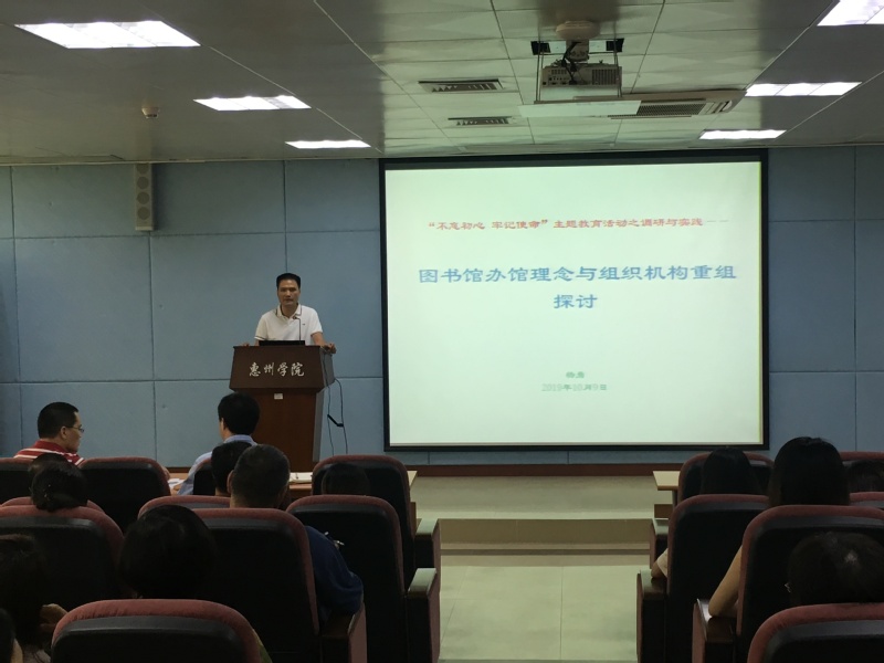 图书馆馆长杨勇首先作了动员讲话,号召全体员工积极响应“不忘初心、牢记使命”主题教育,深入推进图书馆各项服务工作,切实以主题教育成效提升服务水平。接着,杨馆长为全体员工作了一场题为《“不忘初心、牢记使命”主题教育之调研与实践——办馆理念与组织机构重组探讨》的报告。他围绕“初心与使命”主题,结合图书馆的工作实际,谈了对党的初心与使命的理解,阐述了高校图书馆的初心与使命。他认为,传承文明,服务用户,就是高校图书馆的初心与使命;他还对办馆宗旨、办馆目标、办馆理念、图书馆精神等谈了自己的看法。同时剖析了图书馆目前存在的问题,他表示,为了践行办馆理念,有必要对图书馆的现行机构进行重组,做到人尽其才,人岗相适,切实将用户服务工作作为今后工作的重心,并移向前端,全体员工要积极适应当前图书馆的变化模式,在职能转变、工作创新、优良服务等方面花心思、下功夫,发挥好图书馆服务育人的功能。报告主题鲜明、视角新颖、问题深入、发人深省。