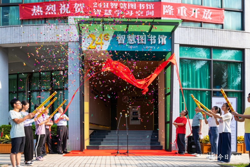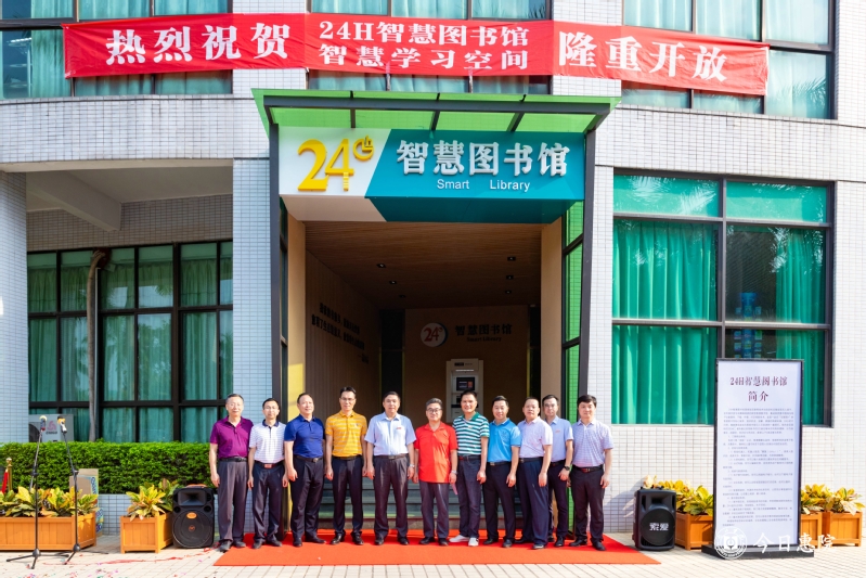 学校领导和图书馆负责人共同为24H智慧图书馆揭牌