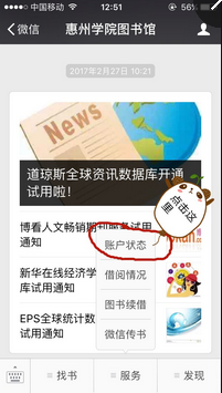 1.微信搜索公众号,惠州学院图书馆。