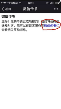 在微信传书栏可以看到微信传书互动消息,对方的回复也会在这里显示。