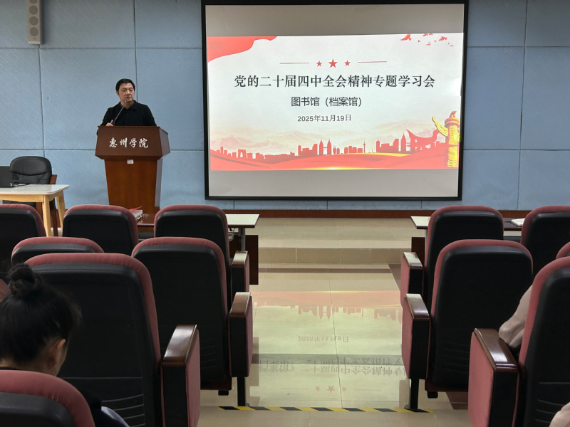 为深入学习贯彻党的二十届四中全会精神,切实把思想和行动统一到党中央决策部署上来,推动图书馆(档案馆)事业高质量发展,11月19 日下午,图书馆(档案馆)党支部在西座三楼小报告厅召开党的二十届四中全会精神专题学习会。党支部书记邹富联带领领导班子成员领学相关重要内容,结合工作实际分享学习心得,全体党员参加了学习会。
